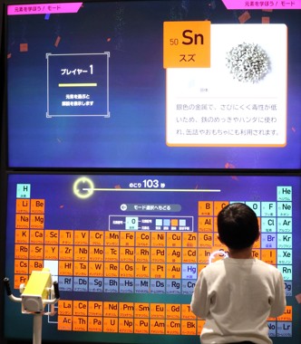 こちらはゲームをしながら元素や化合物について学べる展示物で、