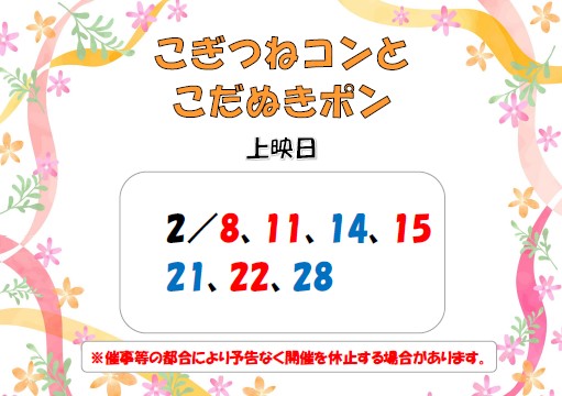 2月の映画会「こぎつねコンとこだぬきポン」